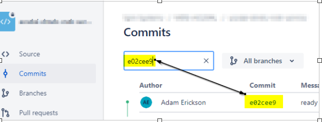 The last 7 digits (e02cee9) can be used to track back to BitBucket where the Production Code is, who committed it and when it was last updated.